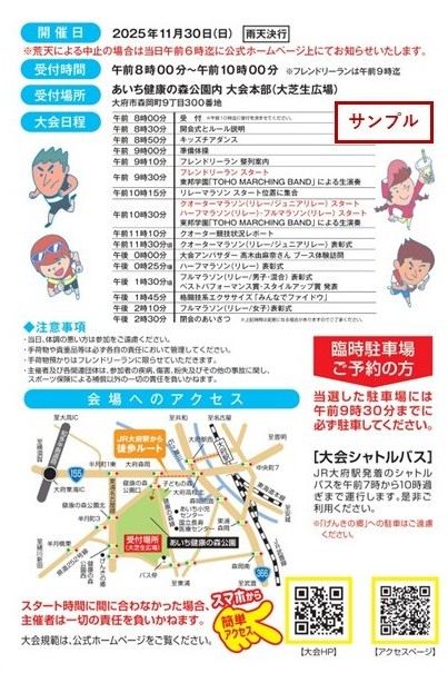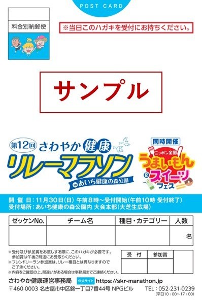 本日11月15日(土)にエントリーされた皆さまに「参加証ハガキ」を郵送しました。週明け11月18日(火)以降にお手元に届く予定です。